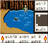 有名といってもシナリオが面白いとか、グラフィックが素晴らしいとかいった類ではないのがミソ。とにかく、このゲームではプレイヤーが良く死にます。というか、各場面には何かしら死ぬ要素が紛れ込んでます。しかも、困ったことには普通のアドベンチャーで良くやる行動で死ぬ確率が高いこと (たとえば、本を見つけたらまず拾ってから開いて読むけど、このゲームでは拾った時点で罠が作動して死んでしまう (わぉ))。大体、画面右上の目立つ所にセーブコマンドが配置されてるってだけで『何かしようってんならセーブしといた方が身の為だぜ坊や』と言われてる様なモノ (笑)。そのバカバカしくても徹底した死に様の数々には感動すら覚えます (死ぬ時のメッセージがまたオマヌケなのが多いんだ (笑))。このGB版では、コンティニュー機能が付いており、万が一死んでしまってもその直前の場面からすぐに再開出来るのが嬉しいところ。正直、何かやる前に必ずセーブって、言うのは簡単だけれど実際にやるとブチ切れそうになりますからね (笑)