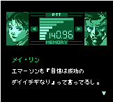 画面に表示される文字が読みにくい (まぁドット数からすれば仕方の無いことなのですが) という問題はありますが、無線機を使った画面も雰囲気が出てて良いです。特にセーブを担当するメイ・リンとの哲学的 (^_^;) な会話は最高です。