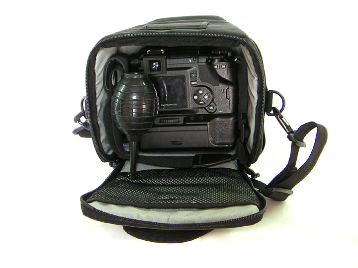 | 内面 | カメラ(E-300)を入れた状態 | ポケット | エアダスターも入る |
