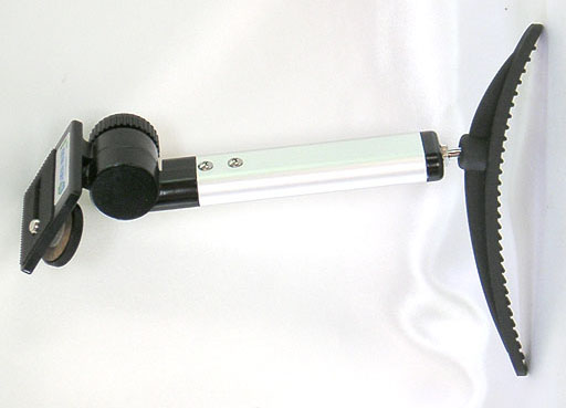 ネットで画像を見る限りでは貧弱な印象を受けたが、実物は胸当て部分は硬質のゴムで他はアルミパイプとダイキャストなど金属を使かった丈夫そうな作りになっている。底面には三脚用のネジ穴も開いている