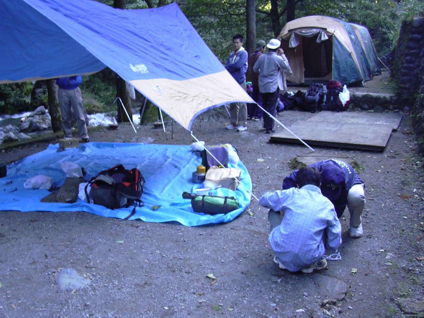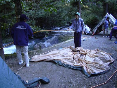 BS隊はドームテントを立てる。