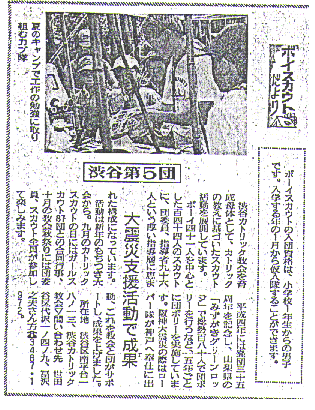 以下産経新聞のボーイスカウトだよりに紹介された(95年12月8日朝刊)渋谷5団の記事より(一番下の切り抜きの記事と同文)