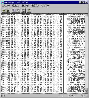 バイナリファイルの表示・書き換えを行うツールです。 Windows XP Professional/Vista Business/7 Ultimate(32bit)/8 Pro(32bit)用です。 64bit版は、こちらです。 変更歴 ・Ver 1.24 一括置換指定を支援しました。 ・Ver 1.24 検索、置換中をESCキーで中断可能としました。 ・Ver 1.24 ジャンプにショートカットキーを支援しました。 ・Ver 1.24 ファイルを開いた時に書き込み可能とする設定をiniファイルの設定で可能としました。 ・Ver 1.24 最近使用したファイルを表示しなくする設定をiniファイルの設定で可能としました。 ・Ver 1.25β 挿入・削除を支援しました。 ・Ver 1.25β 1.19β2から貼り付けの動作がおかしくなっていたのを対策しました。 ・Ver 1.25β 1.19β2の対応で16進ファイル格納、コピーが4GB以上のファイルに対応していなかったのを対策しました。 ・Ver 1.25β 前の検索(Shift+F3)で検索すると異常終了するのを対策しました。 ・Ver 1.25β 1.22からBitmapの表示がうまく動作していなかったのを対策しました。 ・Ver 1.25 ステータスバーに選択範囲、文字コード、読み取り専用の状態を表示するようにしました。 ・Ver 1.25 F4でもマーク指定できるようにしました。 ・Ver 1.25 マウスホイールの動作がコントロールパネルの設定になるように対策しました。 ・Ver 1.25 BMPを読み込んだとき、右上にゴミが出るのを対策しました。 ・Ver 1.25 ゲームなどのpack画像用のSusie 32bit plug-inでメモリ渡しに対応していないのときに、画像が表示されない場合があるのを対策しました。 ・Ver 1.25 内部処理のアドレス計算を見直しました。 ・Ver 1.25 readme.txtにWindows(R) Vistaの支援を追記 ・Ver 1.26 4GB未満の時は、アドレス表示の桁数を減らすようにしました。 ・Ver 1.26 1.25から文字入力が不正になっていたのを対策しました。 ・Ver 1.26 ファイルの終端で16バイト未満のときに、余白を埋めるようにしました。 ・Ver 1.27 内部処理を変更し、ファイルサイズの上限をなくしました。(動作確認は、200GBのため1TBまでを推奨) ・Ver 1.27 4GBより大きいとき、スライダーが動かなかったのを対策しました。 ・Ver 1.27 文字領域のカーソルをアンダーバーに変更しました。 ・Ver 1.27 フォントのデフォルトをMSゴシック11ポイントに変更しました。 ・Ver 1.28 部分保存、16進ファイル格納、ジャンプ、範囲書き換えコマンドで64GB以上を指定できなかったのを対策しました。 ・Ver 1.28 動作確認を400GBまで行いました。 ・Ver 1.29β1 MS ゴシック & MS 明朝 JIS2004 対応フォント (KB927489)をインストール後に、カーソルや選択範囲の表示がずれるのを対策しました。 ・Ver 1.29 Windows7 32bit版/64bit版に対応しました。 ・Ver 1.29 16バイト目で漢字がまたがっているときに、貼り付け結果が不正になるのを対策しました。 ・Ver 1.29a 1.29から選択範囲やマークの表示が2GB以上のときに不正に表示されるのを対策しました。 ・Ver 1.30 マークの色を5つ指定できるようにしました。 ・Ver 1.30 マークの上限を100個から上限なしにしました。 ・Ver 1.30 範囲選択せずに部分保存、16進ファイル格納をしたとき、サイズ0のファイルになるのを対策しました。 ・Ver 1.30 1.29からアンインストール時にレジストリが残っていたのを対策しました。 ・Ver 1.31 1.29から16進での検索で80以上が検索されなくなっていたのを対策しました。 ・Ver 1.32 Shift+マウスクリックで範囲選択できるようにしました。 ・Ver 1.32 Windows 8 32bit/64bit版に対応しました。 ・Ver 1.32 Windows Xpでの動作を可能にしました。(Visual Studio 2012 Update 3 RC2を適用)['13.6.16 追加] ・Ver 1.33 ステータスバーの項目をクリックして設定を変更できるようにしました。 ・Ver 1.33 Stirlingでコピーした内容を貼り付けられるようにしました。 ・Ver 1.33 範囲選択して、16進検索で検索・置換を表示したときに初期値が0欠落していたのを対策しました。 ・Ver 1.33 コピーした16進が大文字の場合に貼り付けたときに値が不正だったのを対策しました。 ・Ver 1.33 メニューに...がついていなかったのを対策しました。 特徴 1.メモリには表示部分しか読み込みません。そのため、AVIファイルなどの大容量ファイル(論理的には、16EBまでですが、1TBまでを推奨)でも素早く見れます。 2.文字列表示・検索でSJIS/Unicode/EUCの切り替えができます。 3.16進・文字列での編集ができるようになりました。(直接書きこみを行います。重要なファイルはバックアップしておいてください。) また、複数バイトの挿入・削除ができます。(最大64KB) 4.16進表示でクリップボードにコピー・ペーストできます。 5.文字列検索・16進で検索ができるようになりました。また、マークできます。(dump4w_mark.iniに保存します。) 置換もできます。 6.Drag&Dropに対応しています。 7.ホイールマウスのホイールでスクロールできます。 8.BITMAPリソースの表示ができるようになりました。また、保存できます。 JPG(JPEG)、PNGなどSusie 32bit plug-inで表示できる静止画にも対応しました。 *画像表示をチェックして、シフトJIS指定して、文字列検索で「BM」を指定して検索する。次を探すと