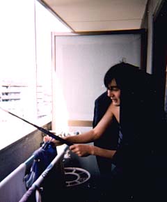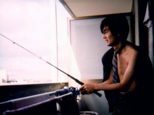 Masha stuck a fishing rod out the verandah at a wintry sky of February. Masha: Is there good angling here? |