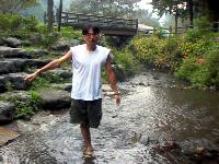 見ての通りのうめキャンプ、なにはともあれうめキャンプ、君と行くからうめキャンプ、風の向くままうめキャンプ、楽しい楽しいうめキャンプ、次回はあるのかうめキャンプ・・・(楽しいうめキャンプの歌より抜粋) キャンプに行こう!このきまぐれかつ無責任なひとことからはじまった「うめキャンプ」。メンツもあっさりと集まり今回はわたし・くろタケ・やん爺・梅ちゃまの総勢4名。くろタケ氏は元ボーイスカート所属の経験者、サバイバルならお手のモノ。今回はお客様気分で楽しめそうです・・・ってところがすでに大福に蜂蜜と練乳をかけて一気食いするくらい甘かった。。。テント・寝袋などはどうにか持ちよってきた面々だったがクッカーが何にもない・・お皿・コップも何にもない・・・食料だって何にもない・・・とすでに殿ご乱心かと思えばその危機感すらない(笑)。さすがにこれではどうしようもないのでドンキホーテによって一通り揃えていざ出発。。とりあえずうめカーは東北道にのるもまだこの時点ではどのキャンプ場に行くのかも決まっておらず、途中のサービスエリアでガイドブックを読むというQ極の風まかせ。最初に行った「☆☆☆☆☆(5つ星)」のはずのキャンプ場は誰もいないゴーストキャンプ場・・・気さくな管理人も露天風呂もはたまた鱒のつかみどりも蕎麦打ち小屋もすっかり廃れておりました。で、看板にはご利用の方は管理人までお電話くださいとあるもののドコモもJフォンもツーカだってみ〜んな圏外(笑)。公衆電話ひとつないところでどうやって電話しろっていうのだろう・・・。仕方がないのでまたまた流浪の旅は続き、なんとか辿りついたのがこちらいするぎ自然公園キャンプ場。管理の方も気さくで風呂は狭いながらも入れたし、まんずまんず楽しめました。とりあえず写真を一挙に紹介。 このなかで欲しいのがありましたらいってください。>関係者
