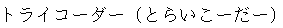 Transliteration of Hiragana: to-ra-i-ko-(:)-da-(:)