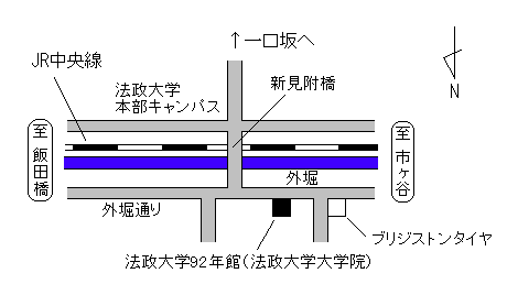 - JR中央線、地下鉄飯田橋駅あるいは市ヶ谷駅下車。外堀通り沿い(下の地図を参照)