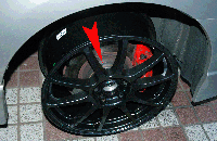 フェンダー上部はかなり削ったのですが、赤矢印部分で干渉