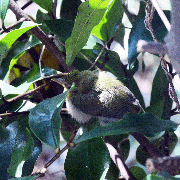 【 トレーニング用の背負子! 】 【 メジロ 】 【 メジロ 2 】 【 メジロ 3 】 【 メジロ 4 (巣立ち) 】 【 トレーニング背負子 ver.2 】 2015 年 09 月 01 日(火)【 トレーニング用の背負子! 】 今年は突然の用事もあって思うように富士山に登れません 明日も雨で断念 体がナマってしまうので、トレーニングを再開 錘を背負って歩いているのですが、重量の調節が面倒くさい! そこで、簡単に重さを調節できる方法を検討 ![]() これは背面パッドのある背負子 エバニュー ショイコ ブラック AT1130 スペック重量が 2.0 kg となっていたので購入したのですが、実測 2.6 kg と重かった 3 脚を兼ねれば実用可と思ったのですが、ちょっとダメそうという結論 そこで、思い切ってトレーニング用にすることに! ![]() これはホームセンターで見つけた大きなワッシャ スプリングレート測定にも使用しましたが、最も錘になりそうなもの 約 8 cm × 8 cm で、1 枚約 400 g これを背負子に固定したい そこで、 ![]() 板に 3 本の長いボルトを固定した物を製作 棒の間隔は 9 cm に それを、 ![]() 背負子に固定した図 高重心がいいので、固定位置を上げた 底面に板を固定し、その上にプラの空ボックスを 3 段 そこに製作したボルト 3 本ユニットを固定 背部に鉄板を固定するなどし、この状態で 9.4 kg 一応これで完成 ![]() 錘をセットする ナットや別の錘を追加して、ベース重量を 10.0 kg にした そこに、1 枚 400 g の角ワッシャを 45 枚( 18 kg ) セット つまり、全体で 28 kg になります 錘を固定するナットは 24 mm 角 ワッシャの重量が正確ではないので、最終的には体重計に乗せて微調整 以上、10 kg 〜 50 kg?自由に調節可能なトレーニング用背負子でした〜 自分の場合ですが、 ここ数週間で、18 kg くらいから増やしてきて現在 28 kg 傾斜のついたマシン 2 km/h 〜 で 30 分〜 調子を見ながら歩いてます 歩いてみると、 低重心だと前傾になって歩きにくい かと言って高重心過ぎるとふらつきが強くなってそれも具合が悪い 錘を背負うと足首に負担がかかるので、痛めないように注意が必要 踵で歩かないと下腿に痛みが出てしまう点は急斜面と一緒 このトレーニング、歩く感じがヤマっぽくて良いです 2015 年 09 月 15 日(火)【 メジロ 】 一昨日、日曜日に庭木の剪定をしていたら、鳥の巣を発見しました! バナナの木(カラタネオガタマ)の中にカップ状の小さな巣があったのです 中を覗くと、なんと毛の生えてない雛が 3 羽! 親鳥は警戒して不在だったのですが、少し離れていたら帰ってきました ![]() メジロと判明 ![]() 3 羽の赤ちゃん鳥(雛) さかんに餌をねだってます 上の写真は窓越しに望遠で撮影したもの もう少し良いのを撮りたいですね 無事に巣立ってくれると良いのですが・・・ 2015 年 09 月 20 日(日)【 メジロ 2 】 ![]() 3 羽とも大きくなって毛が生えてきました 食欲旺盛のようで、親鳥は頻繁に餌を運んできます 3 羽とも上手く育つのかな? 写真は窓からガラス越しに撮ってます 手前の枝がジャマだったりしますが、接近しがたく、ガマンですか・・・ 観察してるとメジロの習性がいろいろと分かってきました 雛は親鳥が来ると口を開け、高く伸びて餌をせがみます しかし、親を認識してやってはいないようです 枝を切ろうと葉っぱを触ったら同じ現象が見られたのです どうやら枝が揺れることに反応するようです これではカラスとかヘビとかでもやってしまいそうで、心配ですね あと、 親鳥は給餌したあと、ウンチをくわえて持ち去ります 巣の底から持ち上げるのではないのです 巣に頭を突っ込まずに持ち去るので、どうしてるのか? 挙動が速くて分かりにくいのですが、何度も観察 すると、雛のお尻から出た直後に持ち去るようです 雛がお尻を持ち上げる動作があり、その後にウンチをくわえて飛び去る どうやらウンチサインがあるようで・・・ 雛が「ウンチ出る」っと言うのか、親が「あんた出しなさい」っと言うのかは不明 どこに運んで行くのかも不明です 餌の種類もいろいろ 黄緑色の青虫 紫色のブドウみたいな木の実 手足が分かるコオロギみたいな虫 などなど・・・ すごく大きなものを丸のみすることもありますが、親鳥はその後もフォロー 雛の口の中にくちばしを突っ込んで押し込むと言うか、つついて様子を見ます 3 羽が同じように育っているので、おおよそ均等に給餌されているのか・・・ いやいや、鳥の巣を間近に観察できる環境ってスゴイです ダイニング南側の窓から 1.5 m くらい 夜間用に監視カメラをセットしちゃおうか? 新たな趣味? 面白いです〜 2015 年 09 月 22 日(火)【 メジロ 3 】 ![]() メジロの雛はさらに大きくなりました! 観察が忙しくて大変です ![]() 午後には 2 羽が巣の外に! 枝伝いに少し離れますが、飛ぶ気配はありません 親は巣の外の雛にも餌を与えて世話をします 左の 1 羽は毛並みから見て少し成長が遅いのか? 夕方には 3 羽とも巣に入りましたが、巣立ちは近そう 2 羽が巣立って、残る 1 羽が遅れて巣立つってあるのかな? 明日が楽