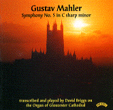 今回は本来の『珍盤クラシックCDの部屋』の姿にもどって、グスタフ・マーラー作曲の交響曲第5番嬰ハ短調です。そして珍盤の珍盤たる所以は、第1楽章から第5楽章に至るまで、全曲をパイプオルガンだけで演奏している点です。演奏者は David Briggs というオルガニストで、編曲も演奏者自身によって成されています。使用オルガンは英国 Gloucester Cathedral の大オルガンとのこと。有名な第1楽章葬送行進曲冒頭のファンファーレに続くトゥッティの、教会の聖堂全体に響き渡る音のシャワーのなんと壮麗なことか! そして、教会の聖堂で聴く超有名な第4楽章のアダージョの、なんと敬虔で厳かなことだろうか! オーケストラで聴く通常の演奏はそれはそれで素晴しいけれども、このオルガン独奏だけで聴くある種モノトーンなマーラーは、だからこそ我々に多彩な想像力をかきたてさせる。(1998.12.31)