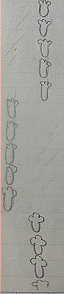 「そうです。その男が死んだ日はちょうど雪だったので、足あとがくっきり残っていたんです。5つ一直線に足あとがあったら、今度はちょっと前の方に5つ足あと。そのくりかえしです。これがその足あとの写真です(右)」
