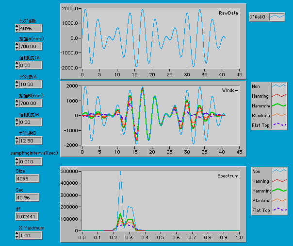 Note 041を参考にして、自分でいろいろ試してみることを勧めます。ブロック遊びのように手軽に組み立てて試してみることができるLabVIEWは便利なツールだと思う。
