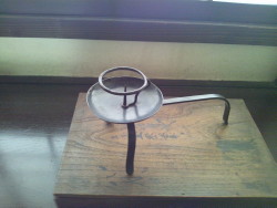 住居の中は、ここも風通しと採光がよく、中庭に面した部屋であぐらをかいて座るととても快適です。しばらくそうしていました。日本は四季がはっきりしていて、夏は蒸し暑く冬は寒い。冷暖房器具のない昔は、寒暑をどうしのぐかが問題でした。ですが相反する二つを両立することは難しい。日本人は夏の蒸し暑さを避けることに重点を置きました。だから昔の家屋は風通しがいいのです。今でも、夏に田舎を訪れた時に民家に案内されて、冷房などかけていないのにとても涼しく感じた人は多いかと思います。その分、冬は冷たい風が吹きぬけて寒いのですが・・・。五月にもかかわらず暑い日でしたから、夏仕様の快適さが存分に発揮されたのかもしれません。 中には槍や陣笠、鎧などが飾られています。その中でも目をひいたのが、ろうそく立てでした。昔の人はこういうもので灯りをとっていたのかと妙に感心してしまいました。 外は暑いですし、気持ちの良い家屋でもう少し過ごしたかったのですが、20分ほどで外に出ました。 次はいよいよ城内へ入ります。もと来た道を引き返して大手口へ向かいます。
