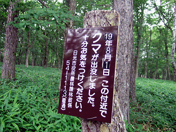 日光からいろは坂を経て10時30分、戦場ヶ原の「赤沼」に駐車。クマ出没に怯えつつ戦場ヶ原ハイキングへ。昨日もこの近辺で目撃情報あり。笹薮が風に揺れてザザッというたびにドキッとする。北海道で買ったクマ避けの鈴をいつも家に置いてくるので、今度こそザックに着けておこうと反省しきり。花の絨毯のような小田代原を経て湯滝まで3時間歩く。13時30分湯滝茶屋で舞茸そば。雨が降ってきて帰途5kmのハイク断念。ちょうど湯元からやってきたバスで赤沼まで(300円)。赤沼を出立、中禅寺湖畔の「イタリア大使館別荘記念公園」に立ち寄ったあと、「竜頭の滝」を眺めながら茶屋の「草団子セット」(400円)で一服。保養所に帰って、再び卓球で勝負!まあ引き分けかな?夕食、どうもコップが小さく、やはりビールは大グラスで一気にいかないと・・。プラスチックでもいいや。