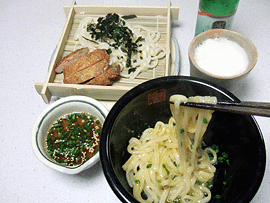 朝ジョギングして77.0kg。連休明けの出勤はだるい・・。社員食堂で炒飯(530円)&惣菜(イカ・マリネ=120円)。今週1回目の“休肝”日!夕食は亀城庵「さぬき本膳うどん・太麺300g」の半分を13分間茹でて「ざるうどん」、蒲鉾(数切れ)を添える=写真。独レーベンブロイ・アルコールフリー(アルコール分0.5%未満)330ml。