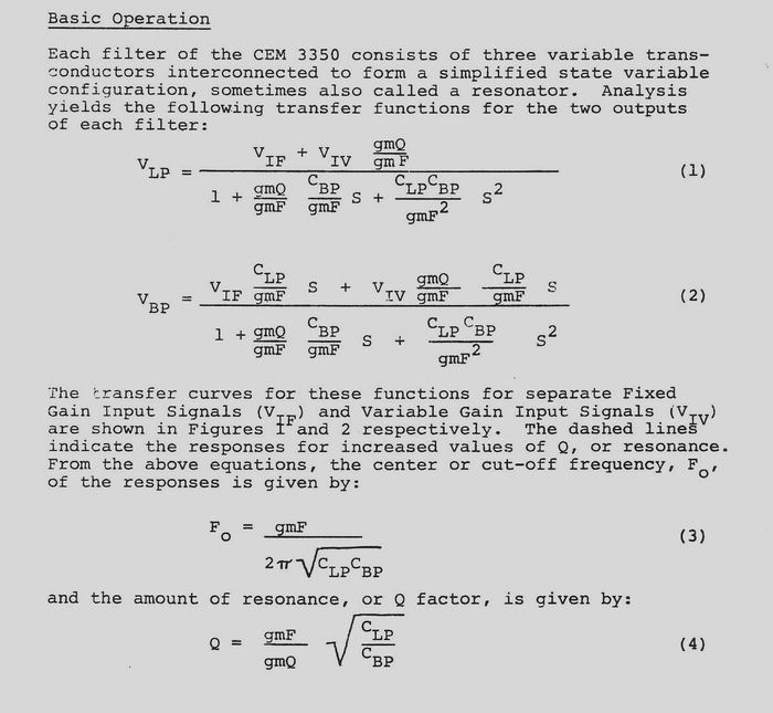 SVFにおいてFc付近は正帰還がかかり、SVFの構造は信号がループする構造なのでFc位置での印加信号(SIG IN)電流量を下げることでQをコントロールしているわけです。 このCEM3350においてはVCR側に流れる電流とCap,側に流れる電流の分配でQをコントロールしているようです。