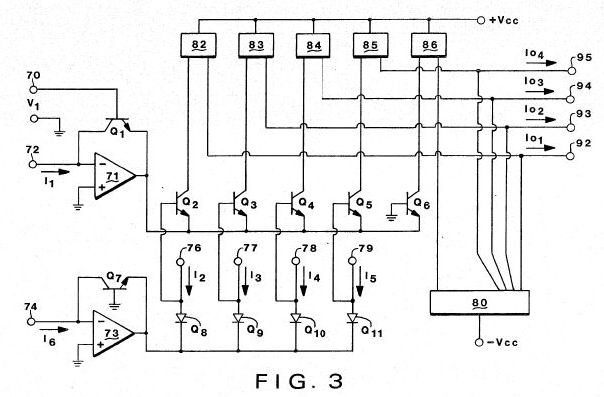 普通のLadder VCFのように上(Vcc)のVCR素子から差動対に向かって直線的に制御電流が流れてはいないのでわかりにくいのですが通常のOTA内のカレントミラーの動作を考えればわかるのでは。Ladder VCFゆえ最終段のカレントミラーが負荷抵抗の役目をしVCA化しないような構造になっています。