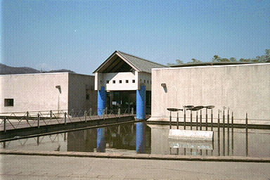 相模川の上流から下流までの流れと、それに伴う岩石や植物の変化を演出した40mの水槽。