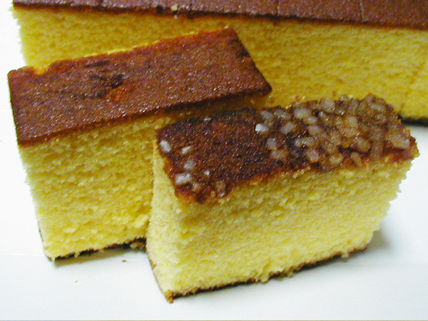 このざらめが時間の経過とともに溶けだしカステラの生地に浸透していきます) photo guruman