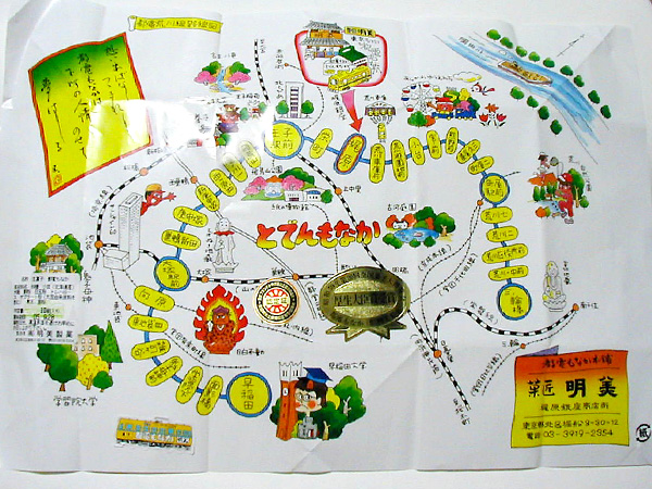 包装紙を広げると都電荒川線の路線地図になっています photo guruman |