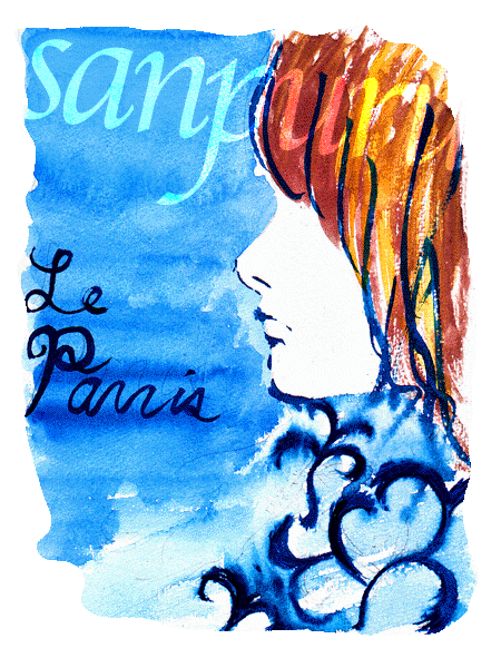 アジアンブルー ブルーの生地に東洋の唐草模様の アンティークな洋服を着たパリジェンヌが、 マレ地区の住宅街に消えていきました。 次へ ギャラリーTOP |