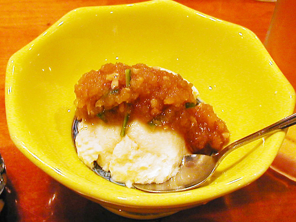 一皿目 濃厚な豆腐の上に大根おろしベースの濃厚な味付けのタレが...美味 photo guruman