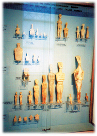 12.アテネ-キクラデス博物館 9月24日(旅3日目) 私はキクラデス美術館に向かった。この美術館はギリシャ、エーゲ海に浮かぶキクラデス諸島から出土した品が展示されている。原始美術のおおらかで素朴な表現の人間の像が美しく並べられていた。かわいくて、本当にほほえましい。割にマイナーな博物館にもかかわらず、日本人のカップルがいた。 海外でバックパッカー姿で日本人に会うと、たいてい気まずい挨拶が多い。カップルと出会ったときなどなおさらだ。このときもそうだった。でも挨拶を返してくれるまでまだましらしい。大阪弁の彼女はミコノス島のビーチで同じハネムーナのカップルと何度か会い、その度、にっこり笑顔で挨拶しては無視され、彼女も意地になったのか、そのカップルの前で挨拶してくれるまで、ことごとく顔を覗きこんだらしい。(想像すると笑ってしまう。物をうりつける怪しい日系人だとおもったのかな?)最後の方になると、男性の方は挨拶してくれたらしいのだが、最後まで女性には無視されたそうだ。お疲れ様。 一回りした私は、1Fにあるテラスで一休みしようとテラスに出た。すると、右側に別の棟に続く通路を見つけた。こちらも拝見、こちらは室内調度品が素晴しかった。テラスで20分程休憩をとり、リカビトスの丘に向かった。 つづく→ |