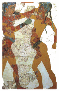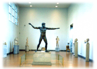 14.アテネ-国立考古学博物館 9月24日(旅3日目) さて、次なる目的はアテネ国立考古学博物館だ。私はここで、どおしても見たい作品があった。「竪琴を弾く男」だ。 写真とは本当に便利だ。言葉が通じなくても博物館でそれを見せればそこまでつれていってくれて指差してくれることもめずらしくない。ちいさな博物館であれば、関係者以外立ち入り禁止の修復中の部屋ににまで案内してくれることもある。しかも解説つきで。私は新しい街に着くとそこの地図とともに観たい作品や場所の写真の絵葉書を買って地図と一緒に持ち歩く。そして観光が終わると日記を書いて自分宛に送る。あとで日記を読むもいいし、なにより荷物にならない。(たまに届かない郵便物もあるらしい。) あいにく「竪琴を弾く男」の写真は持っていなかったので端から見て行くことにしよう。私のお目当ての「竪琴を弾く男」はすぐにみつかった。1Fにあったからだ。入り口をはいって右奥のミケーネ文明の部屋にあった。掌にのりそうなくらいちいさい。高さは20Bくらいだろうか。本当に愛らしい姿だ。私は前、横、後ろ、斜め、上からと長い時間、見とれていた。これで日本に強制送還されてもいいと思うくらいに豊かな気持ちになれた。ああ…やっぱりきてよかった。 私の感動も冷めやらぬ間に、刑事コロンボを65歳位にしたような老人が、監視の女性に向かって、カタログを指差して何か言っていた。イギリス人かな?カタログにはさっき私が見た「竪琴を弾く男」の写真が大きく載っていてこれを見たいようだった。えっ、この人と私の感性ってもしかして一緒なわけ?と思うと65歳位のコロンボの行動が気になりだした。老人は監視の女性に連れられて「竪琴を弾く男」の前で私とまったく同じ行動をし始めた。そして私と同じくえらい感動しているみたいで、何度も「うーん」と声を出して頷いていた。老人は私に気付き「竪琴を弾く男」について熱く語り始めた。何度も「BC.3000年前」と繰り返し言っていた。そうBC.3000年前も前のものなのに少なくとも、イギリス人の老人と日本人の私に国境を越えさせるほどの魅力があった。 今日はこの美術館でも一人、日本人と会った。少し話すと、彼は「安い宿をしらないか?」と聞いてきた。1000円位の宿を探しているらしい。「そんな宿あるの?」私が驚くと、彼は去っていった。私も時間があまり無いので館内を見ることに集中した。 アテネ国立考古学博物館にはギリシャ中の遺跡から、とくに重要な遺跡の品が展示されている。そのまま島に置いておけば、保存状態が良くないので風化して、やがて砂に戻る。貴重な出土品はこの博物館に保存され、出土現場は見るものの想像に任せられるほど、何も無いところが多かった。この博物館を訪れれば、行ったことの無い島の目玉品が見られる。ぶどうを運んでいる絵、ワインという名が付けられ前からある、ぶどうを材料にした飲み物を造る行程を描いた壺など当時の生活を描いたもの。それらを見ていると出土された島の空気を感じることができた。とくに気にいったものがあれば、それが出土した島に興味が湧き、訪れたくなる。「竪琴を弾く男」はキクラデス諸島のケロス島で出土。となればケロス島にも行ってみたくなるもの。きっとのんびりして、素朴なものの多い島だろうな。「ミロス島のポセイドン像」はすごくどうどうとしていている。きっとミロス島の人々は力に対する憧れがある島なのかな。などと様々な島への思いははせる。 とても見事なフレスコ画にみとれ出土した島をみるとサントリーニ島となっていた。ここはかつてアトランティス大陸ではなかったか?と言われている島、出土品からも全盛期の頃の豊かな生活を感じさせてくれる。この島は始めから行くつもりだったが、ますます思いが募った。美術館は旅の水先案内人だ。ギリシャの地図を広げまだ見ぬエーゲ海の島々に印をつけそれを結んだ。私の地図には旅の航路がつけられていく。 博物館はかなりゆっくりと見ることができた。出口を出るとたくさんの人々が、傾きかけた太陽に長い陰をつけられながら、階段で休憩をとっていた。犬もばったりと横に倒れて眠っている。私も一緒に座り、休むついでに絵葉書を書いた。もう17時を回っていた。19時には日はとっぷり暮れる。昨夜、男の人に追いかけられたこともあって、日が暮れるまでに、私はホテルに帰りたかった。パティシオン通りをオモニア広場に向かって歩く途中、スーパーマーケットに立ち寄って品物を拝見。安い!水1P、60円?1本買っておこう。市場はもう閉まっていた。私は、ホテルに向かいパン屋で夕食を買った。この店はホテルに近いので何度か買い物をした。いつも焼たてのパンがおいてあるのがいい。さすがに夕方は冷めていたがその分、値段が安くなっていた。私はハムとチーズを薄いパンで巻いてあるものとハイネケン・ビールを選んだ。店の人はパンをレンジであたためてくれた。夜8時