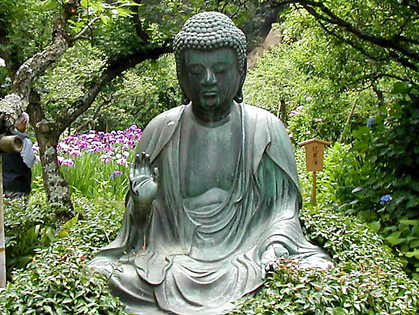 金仏と菖蒲畑 東慶寺(北鎌倉)の風景 6月中旬