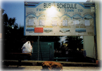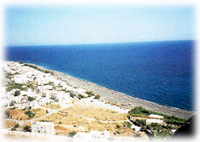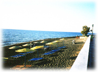 15ペリッサ・ビーチと古代ティラ遺跡 10月3日(旅12日目) 明日はサントリーニを発つ日。一日、時間を気にしないで観光できるのは今日が最後だった。私は地図を広げ、ペリッサ・ビーチと古代ティラ遺跡。それと大阪弁の女の子が言っていたレッドビーチに行くことにした。ちょっと欲張りすぎな気がする。なぜ私はいつもこうなのだろう。最後がいつも慌ただしくなってしまう。 早朝、ひと気の無いバスターミナルでペリッサ・ビーチ行きのバスを待った。大きな犬がターミナルをウロウロしている。私はベンチに座り今日のお弁当を膝の上にのせていると、犬が私の足元に座った。まだ町は薄暗かったので犬が近くにいるとほっとする。 ペリッサ・ビーチに着く頃には外は完全に明るくなった。ここはカマリ・ビーチに比べると、少し寂しい気がしたが、ビーチにはあの青と白のパラソルとサン・ベッドは相変わらずあった。バックパッカーのカップルがサン・ベッドを借りて野宿したらしく身支度をしていた。ちゃんと集金の係の人が現れた。1人750Dr.(約320円)。ユースホテルだと1300Dr.(560円)やっぱり安い。でも昨日は夜、雨が降っていたけど寝袋とパラソルだけで大丈夫だったのかな? この辺りはキャンプ場もあった。トムクルーズの映画「カクテル」(古い)に出てくるビーチのカウンターそっくりのBARもなかなかお洒落だった。レッドビーチ行きのボートがここから出ていた。タイムテーブルを見るとお昼頃の出発だ。 私がブラブラと海岸線を歩いていると『古代ティラ』という標識を見つけた。私はバスでいくつもりだったが歩いていくことにした。ここで一言、続者のみなさんがもしサントリーニに行くことがあって、古代ティラに行くことがあれば、カマリ・ビーチ側から行くほうを是非おすすめします。運転ができれば、遺跡のすぐ近くまで車で行けるし、ロバ・タクシーもある。歩いたとしても、アスファルトの平らな道なので問題は無い。 しかし、私はそれを知らなかった。ペリッサビーチ側から、古代テイラへ行くなんて…。途中までは平坦な道が続き、プール付きのホテルを横目に物珍しい景色にうきうきしながら歩いた。道はやがて、砂利道になり、完全な山登りの状態になった、1時間ほどかけて、登りきった私は冷たい石の上でダウン。クラゲのように石に抱きつきカマリビーチ側から、登ってきた人たちに笑われた。それでも、少し休んだ私は元気がでてきたので、遺跡を見ることにした。 古代ティラはBC.10世頃の遺跡。アクロティリ遺跡よりは新しいものになる。ここは日本人にはあまり知られていないが、ヨーロッパのの観光客や地元の人にとっては、有名な遺跡だ。 ここは断崖絶壁の上にあるため、ペリッサからアクロティリまで続く大パノラマを見ることができる。頂上につくと右手にペリッサ左手にカマリの町が望めとても美しい。 ひとまわりした私はカマリビーチ側から、降りていくことにした。遺跡の出口に出ると、崖の近くにロバが休んでいた。私がロバを見ているとアメリカ人の男の子が2人が私に「写真を撮ってほしい。」と言ってきた。「OK.」と私が言うと、カメラの説明をした後、2人はビデオの早送りのようなスピードで崖にある巨大な岩の上に立ち、かなり危険なポーズをとった。写真を撮ると、彼等はあっという間に戻ってきて「ありがとう」と言ってうれしそうに去って行った。「ぶれたような気がしたけど…まっしょうがないか。」 私はロバ使いのおじいさんにいくらか聞いてみた。2000Dr.(約860円)と言われた。高い!前にフィラまで乗ったときは800Dr.(約350円)倍以上だ。「高い!」と私は言ったが負けてくれそうもないので歩くことにした。帰りはすごく楽だったが足のウラにまめができていて最高調に痛くなっていた。はき慣れていたくつを選んできたのだけれど、旅12日目にして靴底が割れ、そこにちょうどまめができた。砂利石や少しでもおうとつのあるところを歩くと飛び上がるくらいに痛かった。「早く靴を買わなくちゃ…。」私は痛い足をごまかしながら、カマリに着いた。 この辺りはお洒落なホテルが多い。ホテルにはかならずプールが付いていたし、その横にはBARがあった。Cさんたちもこの近くに泊まったのだろう。カマリ・ビーチで少し休み、バスでフィラに一度戻ることにした。ところが、一番日差しの強くなる時間帯にバスはなかなか来なかった。バス待ちの先客だったイギリス人の男の子もぐったりしていた。30分ほど待ちバスが来た。 フィラの町に戻り、いつものピタ屋さんでピタを買い、銀行の近くの広場で昼食をとっていると。両替機の前に色々な国の人が来て飽きなかった。日本人の60代くらいの人たちのグループも来た。前員ピタを持っていた。日本人はみんなピタが口にあうみたいだ。でもみんなこれにも飽きてきたようで、「そばが食べたい」などと日本食への思いを熱く語っていた。座り込む私の前を通り過ぎる人達。彼等にとって