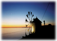 6イアの街-イアの夕日 9月30日(旅9日目) 添乗員さんは先に来ていた。イア行きのバスはすでに混んでいたが席はなんとか確保できた。世界的に有名なサントリーニの夕焼けをみにイアへ出発! 絵葉書になってるビューポイントは日本人の団体が陣取っていて、どこから眺めても人の頭でさえぎられた。 私たちは場所を変えて風車まで歩くことにした。イアの街はミコノス・タウンより落ち着きがあって、おしゃれなアクセサリーやアンティークショップ、タベルナが並んでいて目を引いた。夕焼けのビューポイントを確保すると少しほっとして、海に目をやった。日の入りは19時頃らしい。もうすぐだ。辺りはかなり暗くなっていたが、太陽はまだ沈んでいなかった。みんなこの自然の作り出すショーを見るため、道を走ってビューポイントを探す。これがイアの街では毎日の光景だ。 太陽と海が接してから、青から赤へ幾層ものグラデーションが美しい。やはりイアの夕日はきれいだった。 日が完全に落ちると周囲から拍手が起こった。私も拍手をしていた。今日のショーの幕が降りた。 添乗員さんは今日がサントリーニ最後の日なので、ふんぱつして景色のいいレストランで夕食をするつもりだと言った。私は今朝、おいじさんと約束していたのでフィラに帰ることにした。添乗員さんはバス停まで見送ってくれた。添乗員さんは島内を車で一周したらしく、バスが来るまでサントリーニのおすすめのポイントを教えてくれた。 偶然、Cさんたちとばったり会った。狭い島なので行くところはみんな一緒だ。私たちは英語で話し出した。添乗員さんはさすがに英語がうまく、冗談を言ったり、私に通訳をしてくれたりした。「お互い気を付けて」と言って別れた。そういえば、私は添乗員さんの名前も住所も聞いていなかった。いつかどこかでまた…。帰りのバスはかなり混んでいて、ドアの開け閉めもままならない状態なのに、バス料金の集金はちゃんと来た。けっこう苦しい姿勢を保ちながら、フィラの街に戻ってきた。 つづく→ |