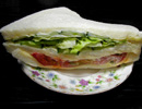 レタス、トマトがはみださんばかりに入っていて、パンの厚さはそれほどない。ピザと同じで生地が薄めで具がジューシー派にはたまりません。少し水分が出ていて水っぽいマヨネーズが出てきたのが残念ですが、、野菜好き向きです..