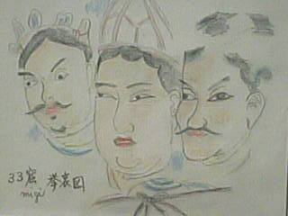 寄進王の肖像はブグラ・サリートトク(都督)と記述されている。腰帯から箸箱や矢立、火打石入れ、魔除けなどをさげているが、これはウイグル族の遊牧時代からの伝統であるそうだ。