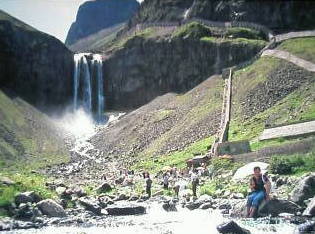 | 長白山を訪れるひとは断然朝鮮人が多い。彼らは素足となり石に腰を下して流れに足を入れている。 | ![]() |