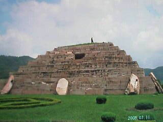 好太王(広開土王)は第19代(391〜412年)王である。王碑は息子長寿王によって建てられた。歴史書に欠かせない好太王碑の前に立つととても感動した。方柱形をした凝灰岩の石碑は高さ6.39メートルもあり、堂々とした姿には父好太王の敬う長寿王の思いがあらわれている。長年の風雪にさらされ碑の表面は風化して火山岩のようにごつごつしていてるが四面に刻まれた1775の文字は永遠を願った刻みの大きさ深さによって今でも文字の形をつないでいるのだ。