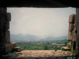 | 振り向いて墓道から外を眺めるとなんと真前に丸都が一望できる。死しても生活した都の姿を見ることができるなんてうらやましい限りである。 | ![]() |