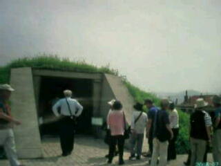 高句麗貴族の墓である。ここでは塚のなかに入って墓の中を見ることができた。墓道、甬道、墓室の三つで構成されていて、地下3〜4メートルに花崗岩で組んだ墓室がある。墓室にはなぜか三つも石棺床あり東西の棺床はなぜか両方の壁にぴったりと置かれていた。墓の石の表面に描かれた壁画がすごい。墓室の頭上の菱形の藻井にも四壁にもまた甬道の両壁にも壁画が描かれていた。墓室の東西南北に配した四神、古来の神々、仙人、龍、飛天など当時の鮮やかさを残す壁画には驚かされる。(なお、五かいのかい(kui)という漢字は兜を意味し五かいとはすなわち五つの兜型古墳という意味であるらしい。)