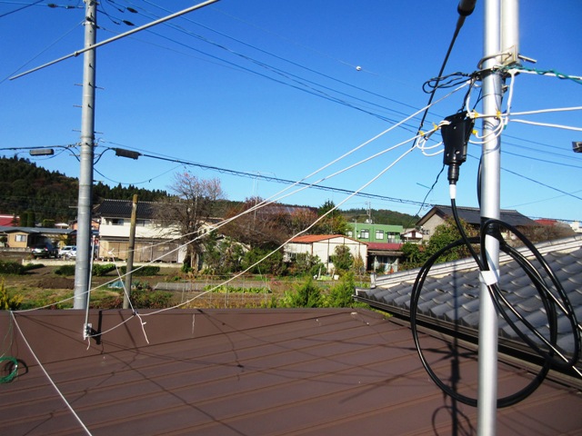 ダイポールエレメントに並行する他アンテナの支線3本を非金属化することにより改善