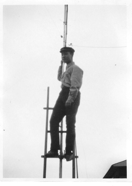 アパートの屋上に設置した145Mhz5エレ八木スタック、HF DP−CP5 GPアンテナ