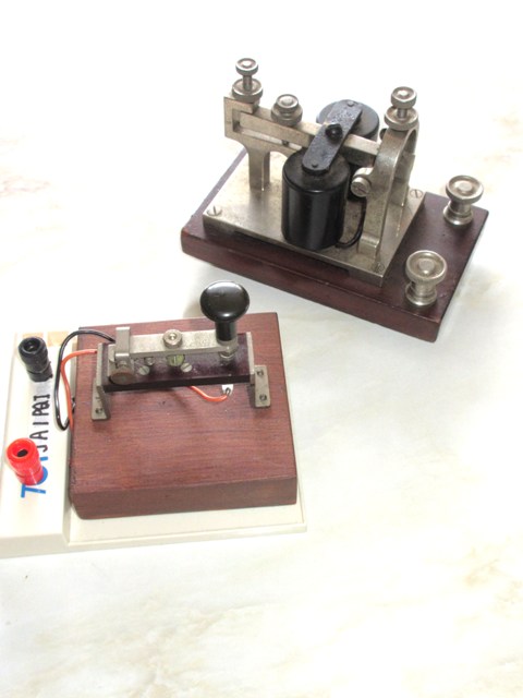CW KEYの準備 電報での送受をモールスで行っていた時代の受信機と送信Key