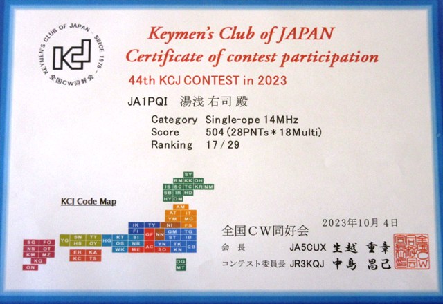 8月20日 44th KCJコンテスト 14MHZシングルバンド(C14) 29×18 総得点522(Rank17/29)