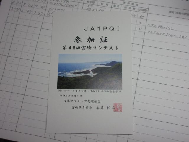 県外局個人HFマルチバンド 電信部門 交信数8 得点8 マルチ6 総得点 48