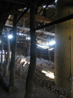 | 一階の中心で窯が口を開けている 頑丈な柱が印象的である |