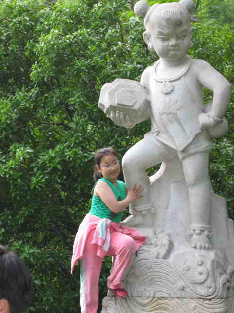 石獣も地元の子供たちのかっこうの遊びとなっている。