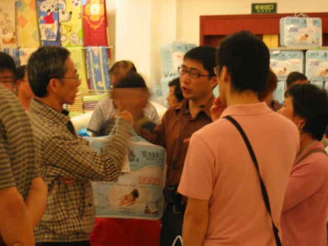 絹の掛布団が人気商品でたくさんの人達が買っていた。