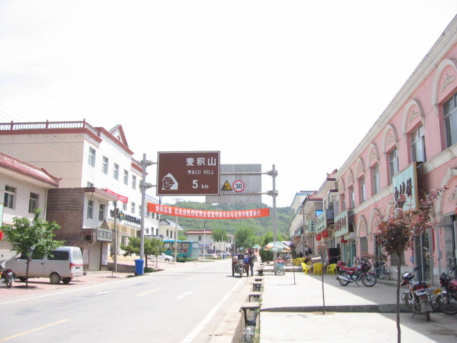宝鶏から天水までは約173キロある。深い谷の道を行くことになるが、いまは高速道路が整備され昼過ぎには麦積山県に到着した。麦積山の街並みは真新しく5月の日の光を受けて眩しく感じた。