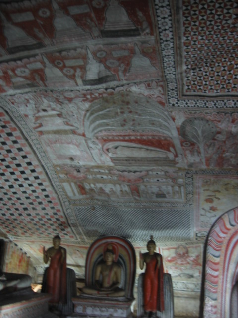 ダンブッラ 石窟 第二窟内の涅槃像(天井壁画)