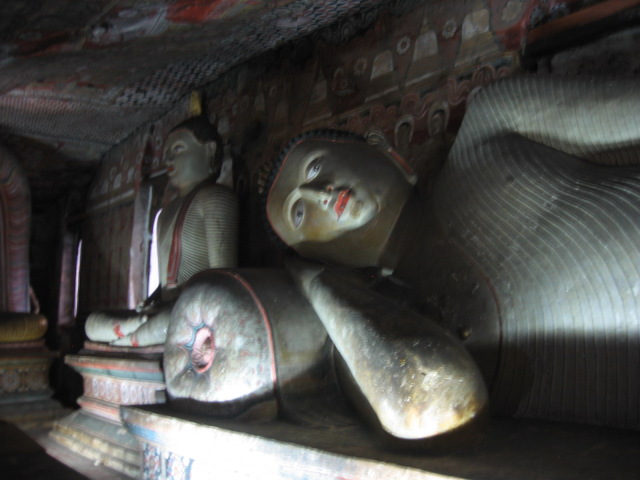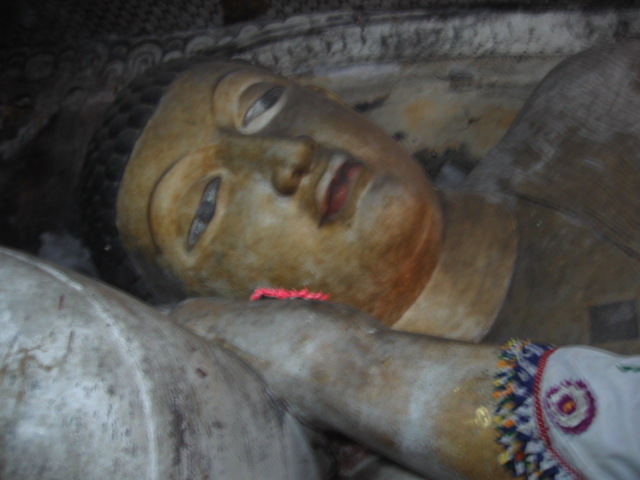 ダンブッラ 石窟 第三窟内の涅槃像(上半身)