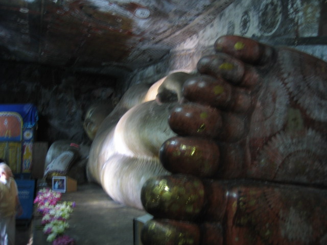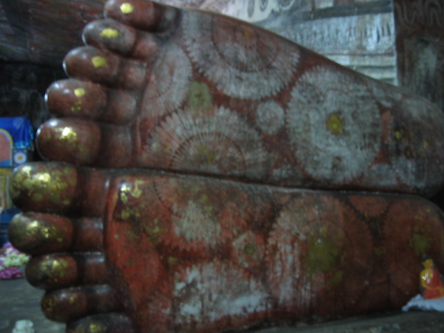 スリランカの涅槃像の足裏はべっとりと朱色に塗られている