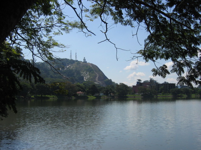 イグアナが泳ぐ湖があり岩山の山頂には大仏が座っている